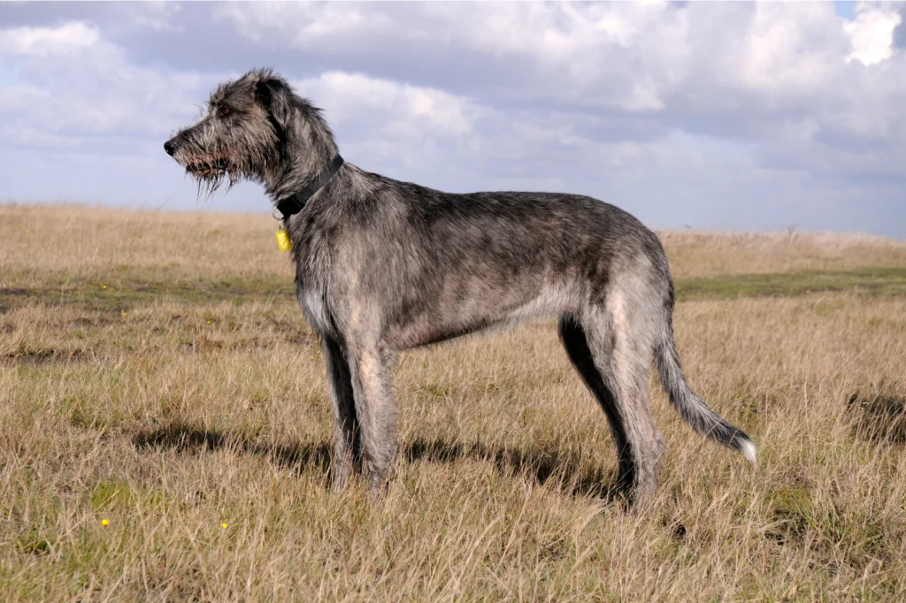 アイリッシュウルフハウンドは世界一大きな犬種と言われており、17世紀末まで狼や鹿の猟犬として飼育されていましたが、比較的落ち着いた性格をしています。