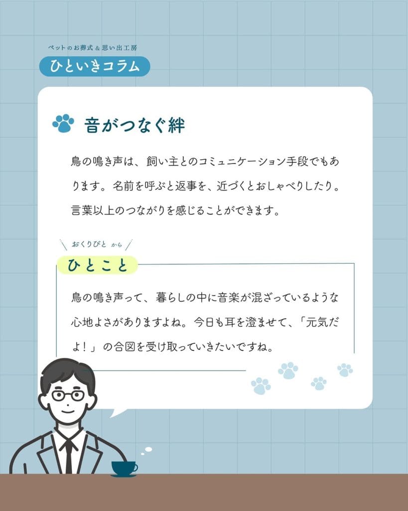 鳥のさえずりが室内で聞こえるのは不思議で楽しいですよね。耳を澄ませてみれば…。
